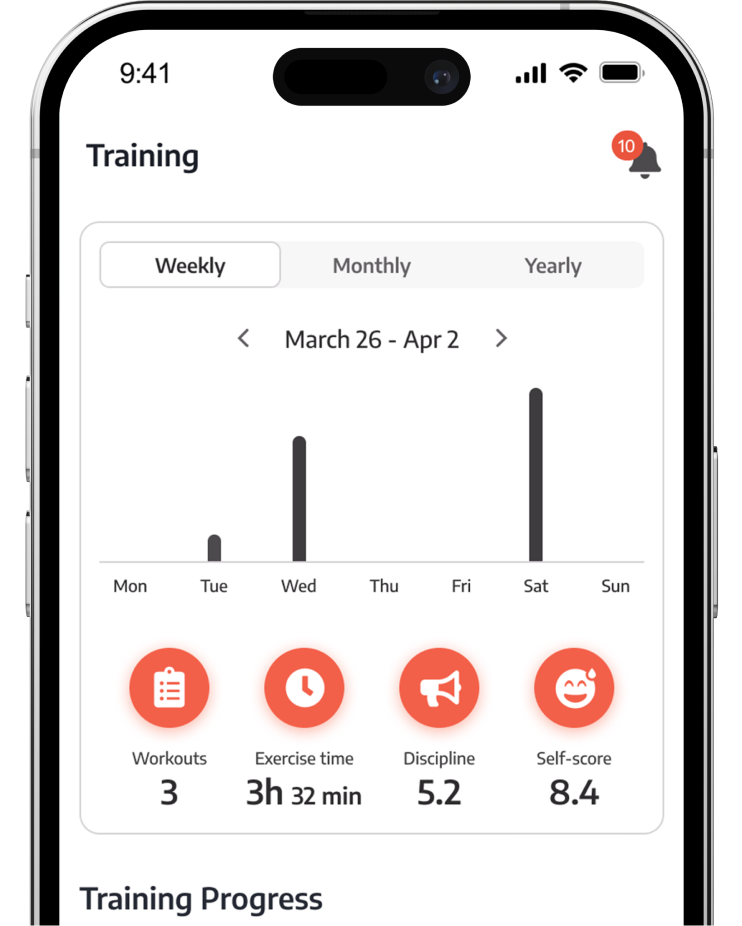 Who needs a physical notebook or additional app to track progress? Use our built-in tracker to see your progress and/or make adjustments.